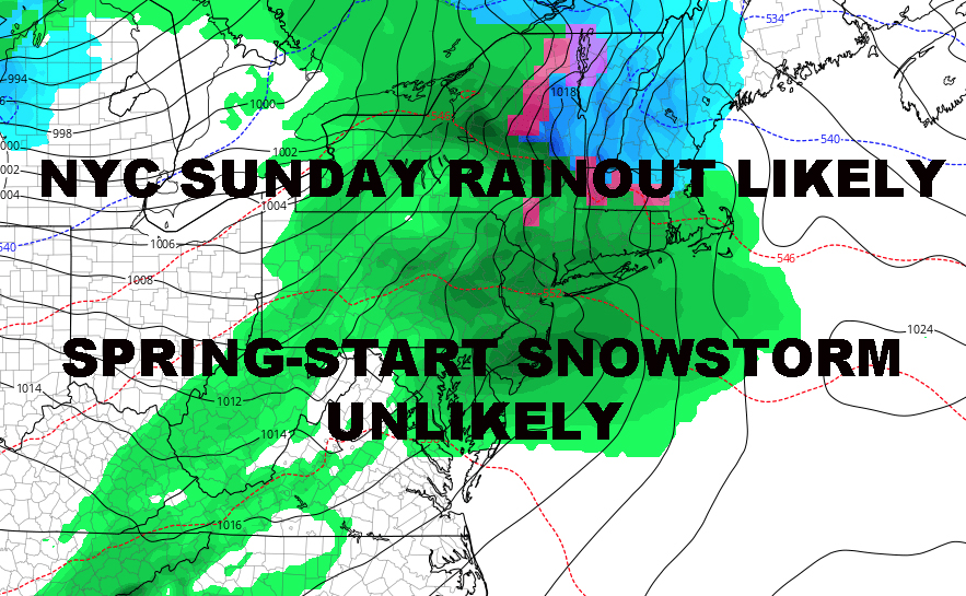 NYC SUNDAY RAINOUT EXPECTED NO BIG SNOWS EXPECTED