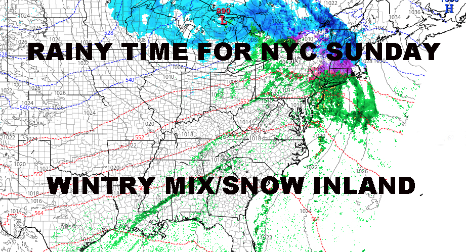 NYC RAINY SUNDAY ON SCHEDULE WINTRY MIX INLAND