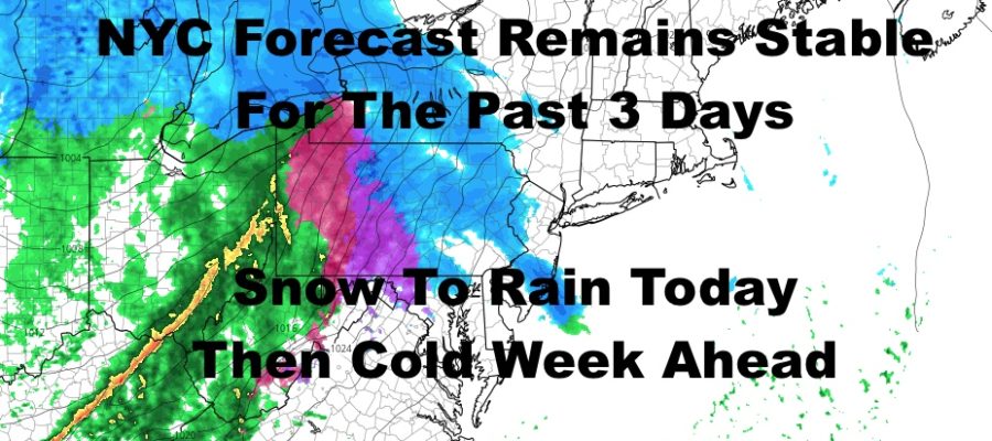 Today’s NYC Forecast Holding Strong With Afternoon Snow To Rain Late