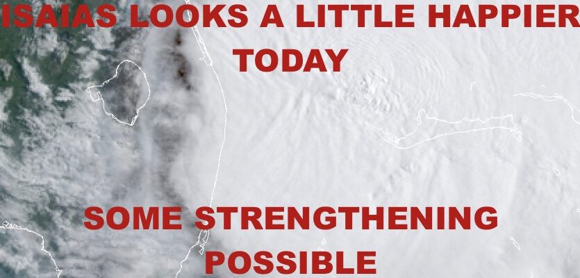 Good morning everyone. We have a “happier” looking storm on our hands this morning as Isaias begins slowing down to eventually make its move in a more northerly fashion. Personally, I was very shocked at what happened to it in the past 36hrs considering Isaias had formed an eye, then got ripped to pieces.