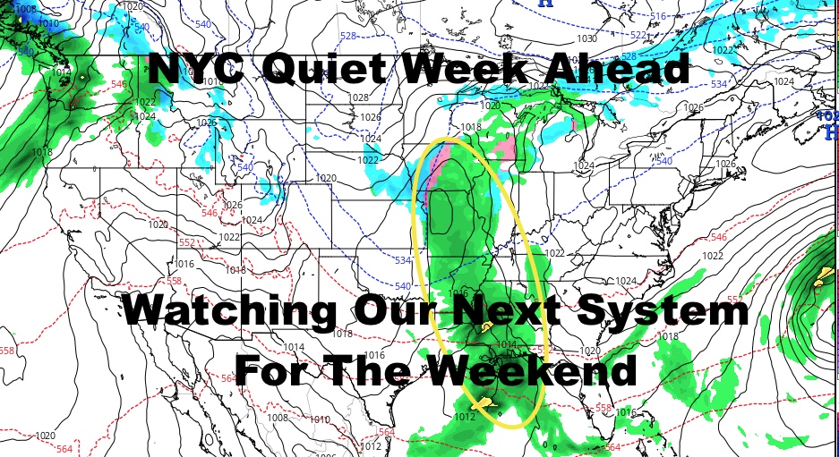 Some models are calling for a snowstorm in the Mid-Atlantic and Northeast, others have low pressure going to our north & west or hugging very close or over the NYC Metro Area. There’s also a lot of different ideas as to the strength of low pressure. At this point, it is too early to tell and to say otherwise is just nonsense right now. We are leaning towards a rainy time here in the NYC area, but it could change if the ingredients come together.