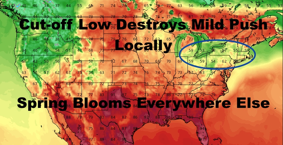 As that low begins to break down, things will relax and temps will be allowed to trek towards where we were supposed to be during this period. I think we break 70 on Friday, but clouds stick around and humidity creeps up.