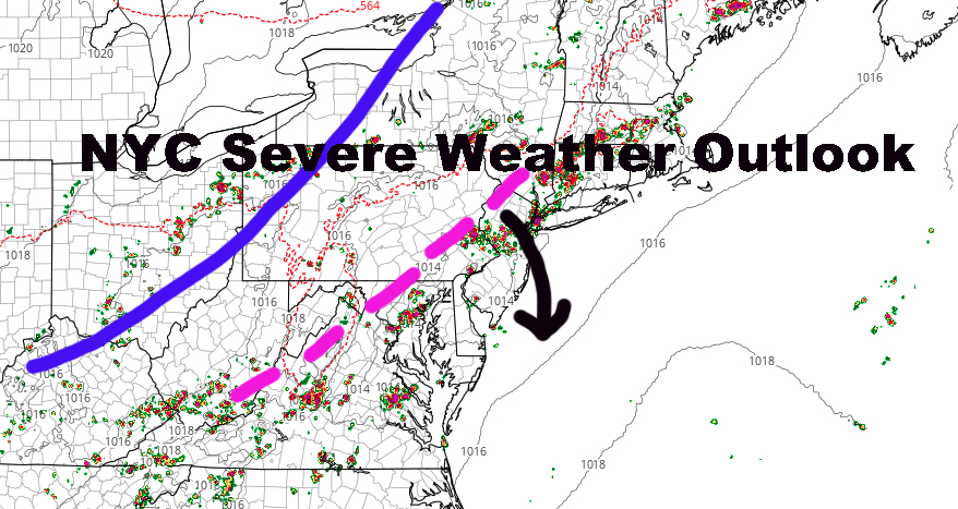 We’ll start watching the radar between 1 & 2pm to see what starts forming ahead of our cold front, enhanced by a wave that’ll push ahead of it. The biggest risk for severe weather, will be Nassau County on west, and into areas N&W of NYC as well as many parts of NJ.
