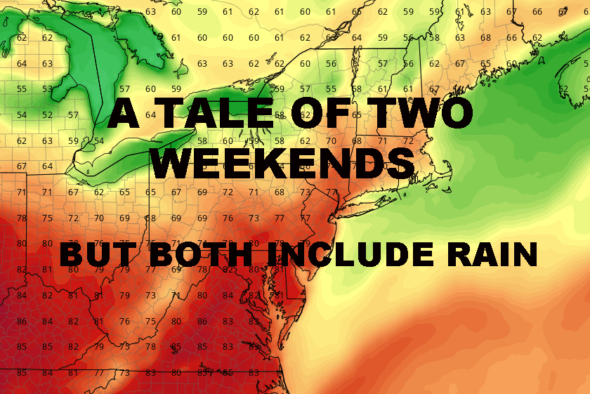 WEEKEND COOL WARM RAINY SPLIT – Good morning everyone. The gloom is back from the 15 minutes of sunshine we enjoyed late yesterday afternoon. We’re looking for a pattern change to happen, but we still have 2 days (kinda 3) to endure these cloudy and rainy conditions. Then, things look to change (somewhat) over the course of the next few days.