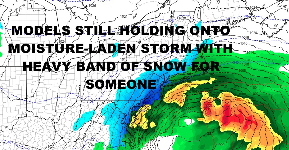 Good morning everyone. While some are nursing a hangover, we’re back to work right away today and trying to decipher what to expect this weekend as far as a possible winter storm. There are a few things we can tell you that we do know, and a few things that we don’t. The biggest thing is that weather models (now essentially all of them), are holding onto the idea of a big winter storm for the Mid-Atlantic, Northeast, and parts of New England.